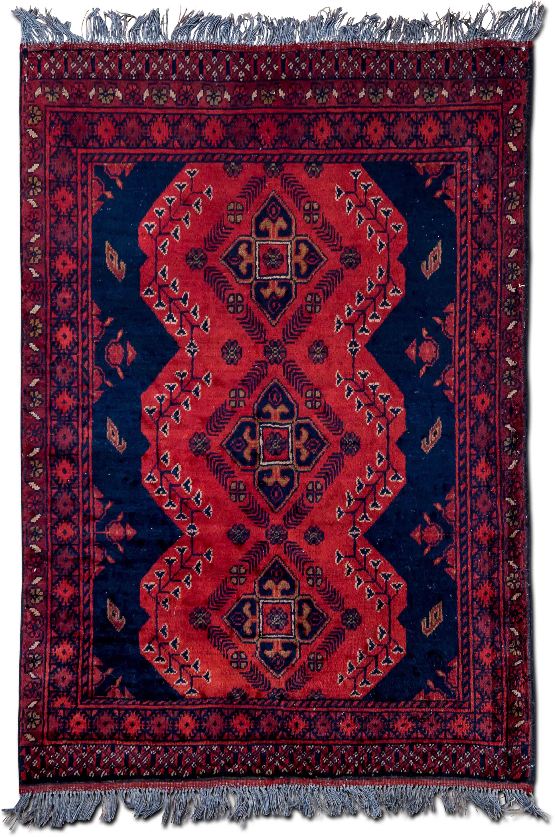 – 4 9" ft x 3 9" ft – 100% wool – red blue