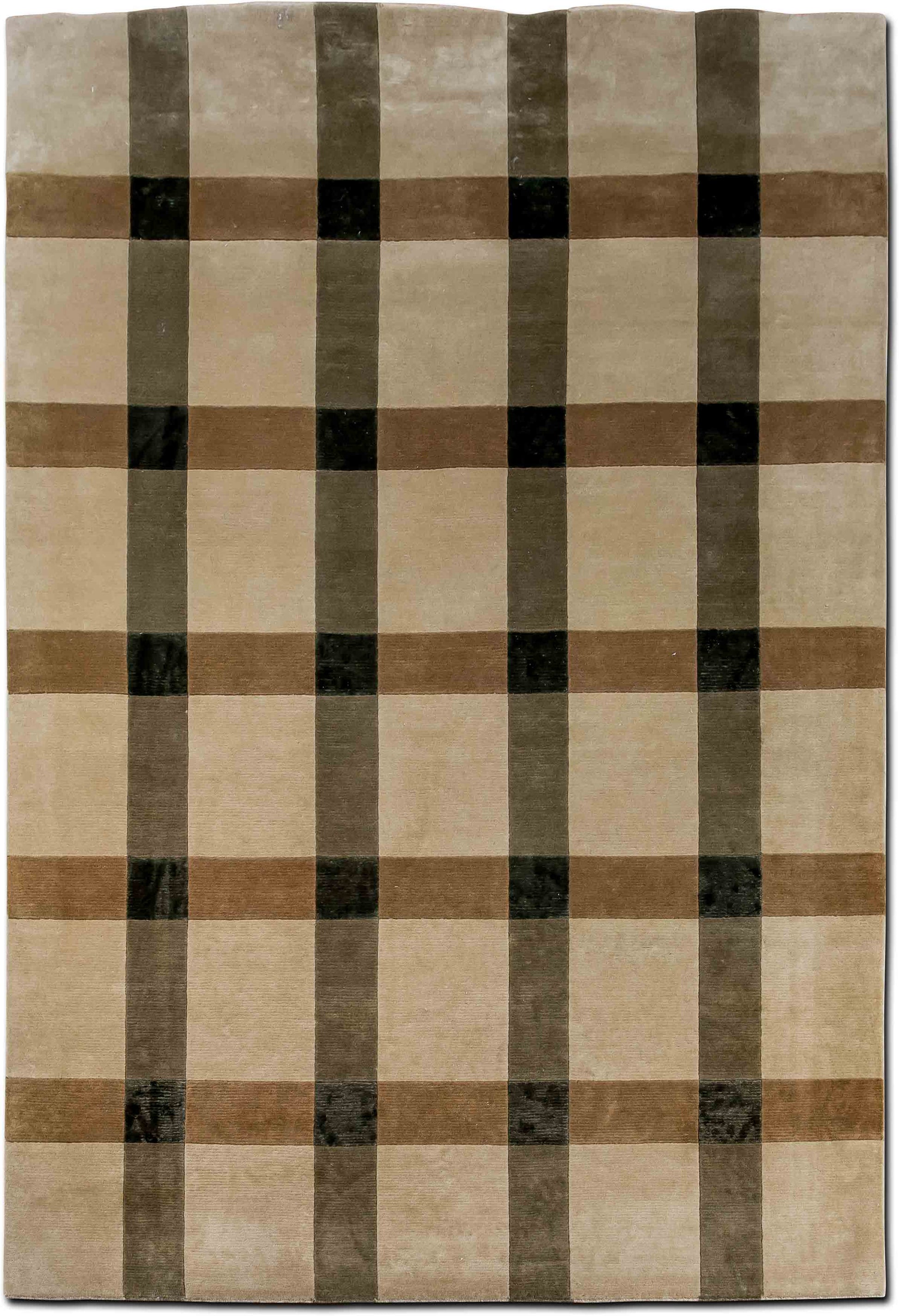 Ground your space in timeless style with this hand-knotted wool rug, featuring a classic plaid grid in soft, neutral tones. Shades of cream, mocha, taupe, and charcoal come together in a refined geometric arrangement—evoking a modern twist on heritage textile patterns. The design is clean and balanced, ideal for adding understated structure to any room.