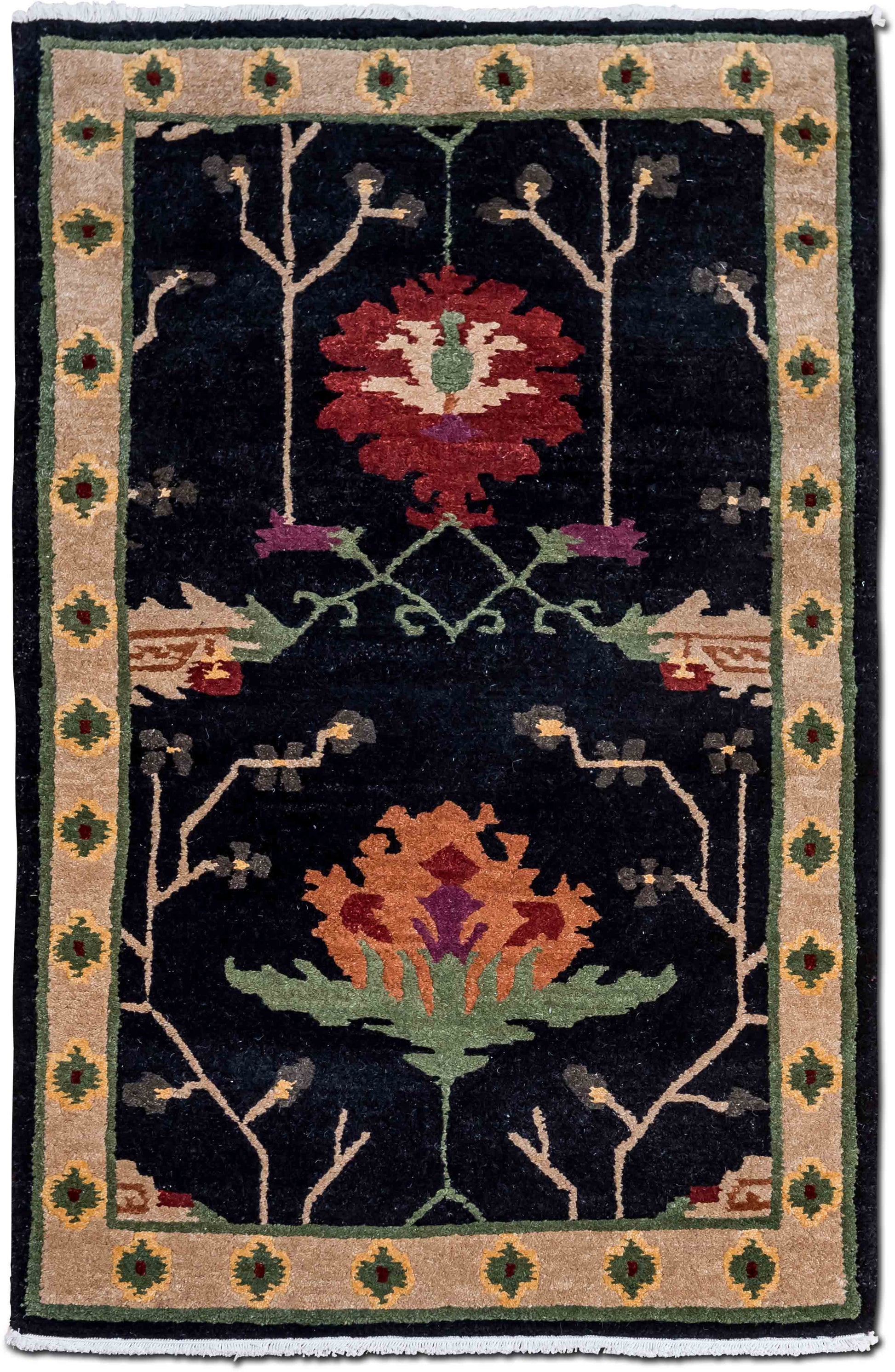 Fine detailing and a highly layered narrative, Big Donegal is one of our most popular Arts and Crafts border rugs. Charming, artful motifs are delicately rendered in the finest Himalayan wool. The dark ebony black field is adorned with neutral earth tones, a versatile traditional carpet. Big Donegal Ebony is available in our standard sizes of 3x5, 6x9, 8x10, 9x12, 10x14 and 12x16. Custom sizes, runners, squares and rounds available