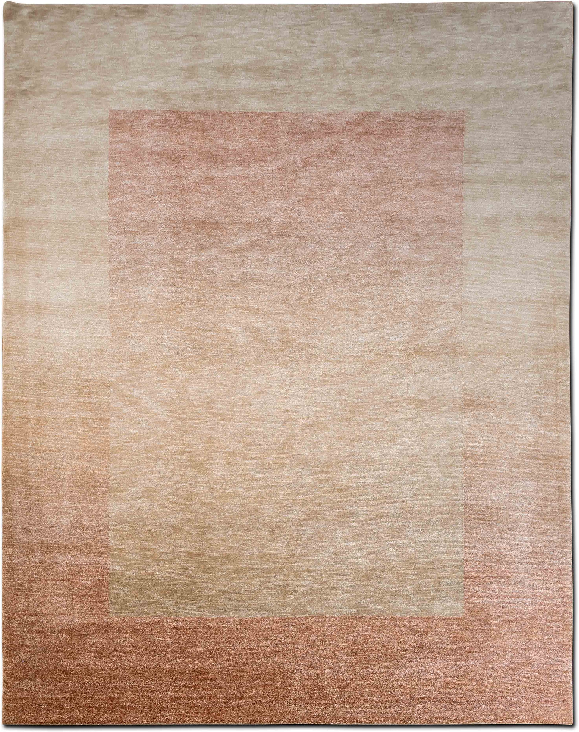This serene area rug features a minimalist gradient design that transitions smoothly from soft beige to warm blush tones. The subtle color blocking creates a sophisticated focal point, ideal for grounding modern interiors with a sense of calm and elegance.